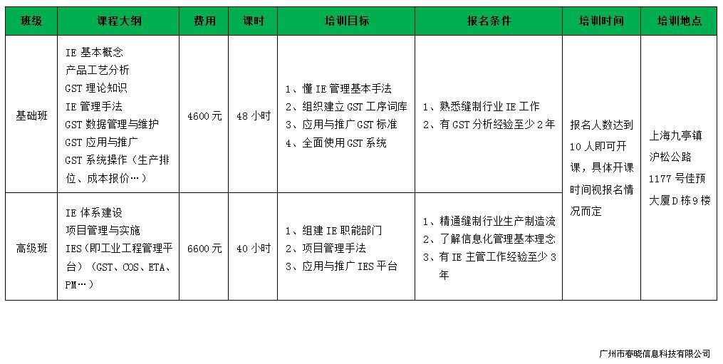 鉴于目前缝制行业IE方面的人才比较欠缺,以及众多行业从业人员希望有学习的机会,QM球盟会将根据行业需求,携手创定公司,在上海组织开展IE相关培训班,欢迎大家报名!具体如下: