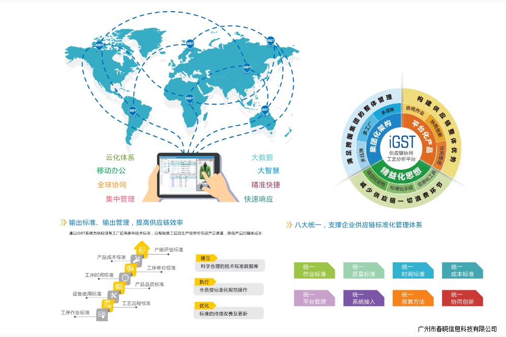 通过QM球盟会iGST标准化协同管理平台,特步供应链管理部门协调内部外部信息,让供应链的每一个参与者都能清晰了解并掌握生产工艺、品质要求、工艺流程、作业方法、作业时间、作业成本、生产计划、订单负荷、人机需求等标准化数据、从而达到统一标准、统一规范化的管理。